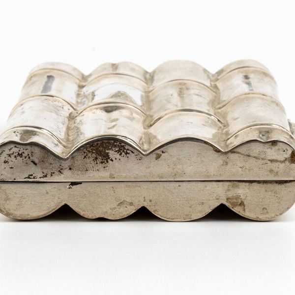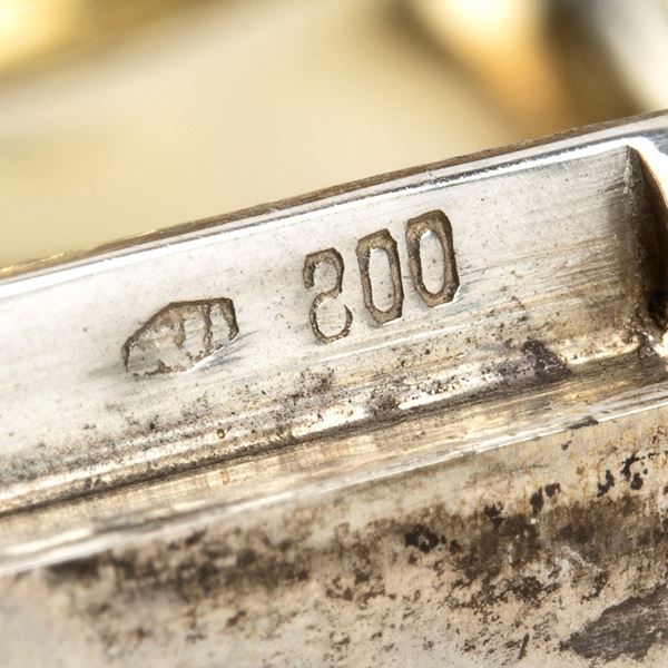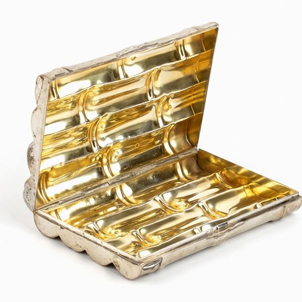 in the form of bamboo canes with gilded interior and hinged lid. 800/1000 silver hallmarked '800'.