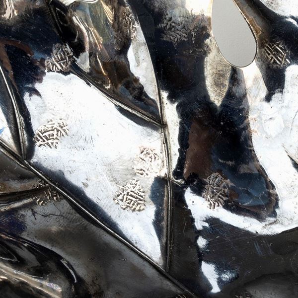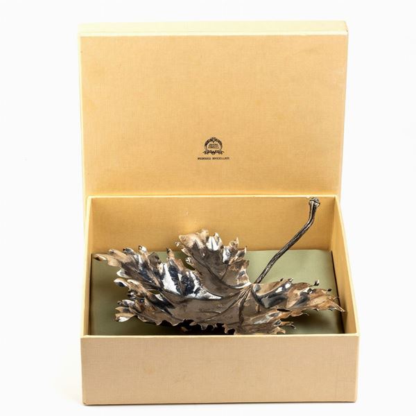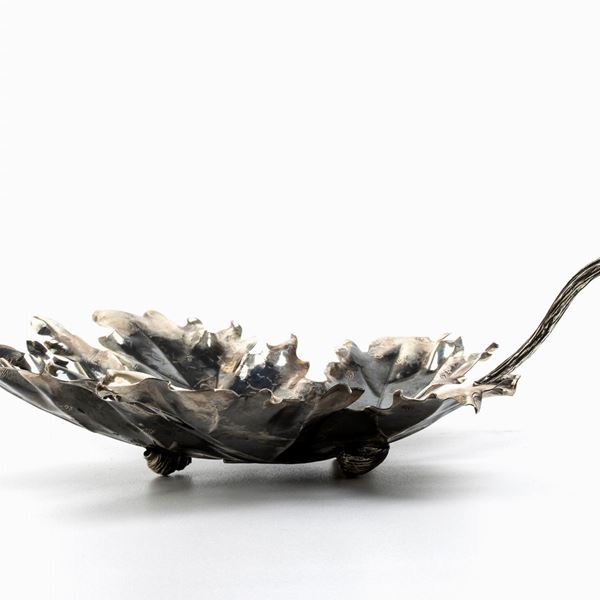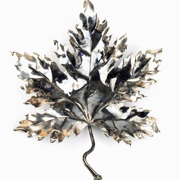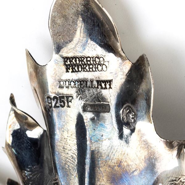 in the shape of maple leaf. Sterling silver, hallmarked "Federico Buccellati - 925 - * 1169 MI".
