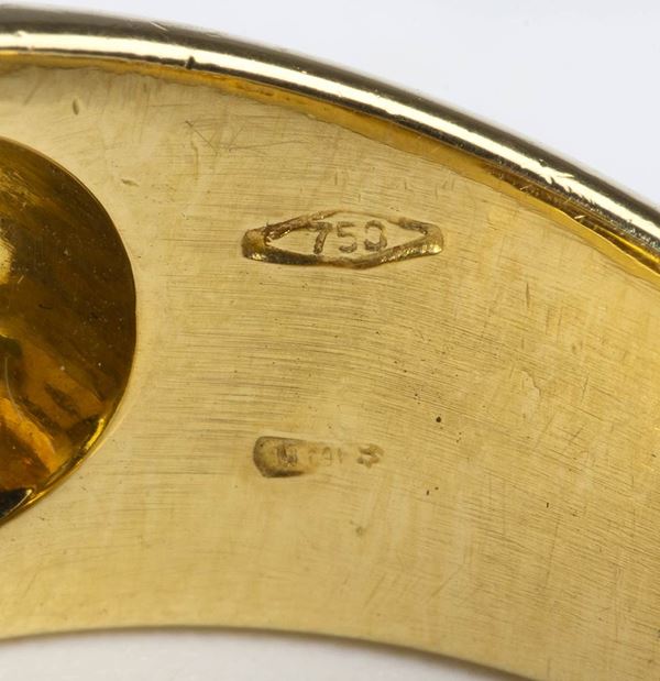 18k yellow gold, with a thin diamond ribbon. N. 11 round shape brilliant cut diamonds approx. 0.14 ct, F-G, VS.