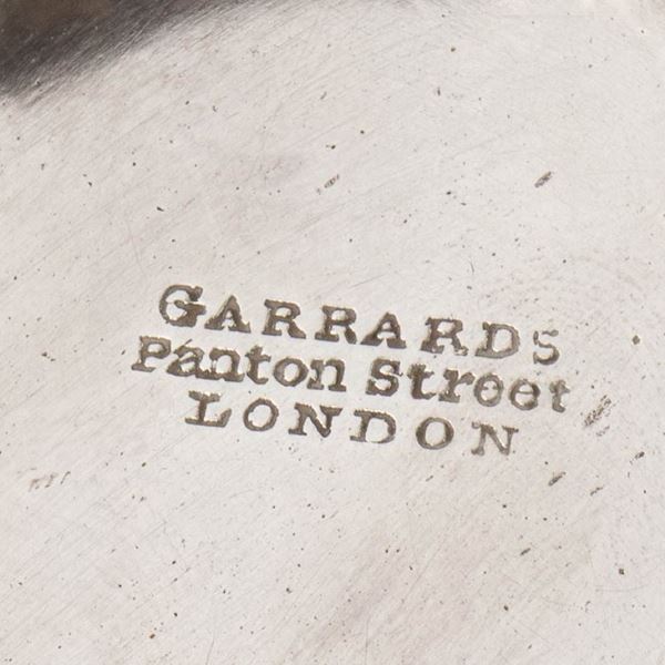 The founder of the firm was George Wickes who was apprenticed to Samuel Wastell in 1712 and free in 1720. His first mark was entered in 1722. He entered his Panton Street marks in 1735 and it is clear from the surviving Garrards' ledger that this is when he began an independent existence. The firm was known successively as George Wickes, Craig & Wickes, George Wickes, Wickes & Netherton, Parker & Wakelin, Wakelin & Taylor, Wakelin & Garrard and when Robert Garrard took sole control in 1802 it had already been established in Panton Street for sixty-seven years. On his death in 1818 he was succeeded by his three eldest sons Robert Garrard (junior), James Garrard and Sebastian Garrard, trading as R J & S Garrard. James Garrard appears to have retired c.1835 and from then until 1843, the year in which they succeeded Rundell, Bridge & Co as Crown Jewellers, they traded as R & S Garrard. From 1843 they were known as R & S Garrard & Co. and from 1909 they have traded as Garrard & Co Ltd .