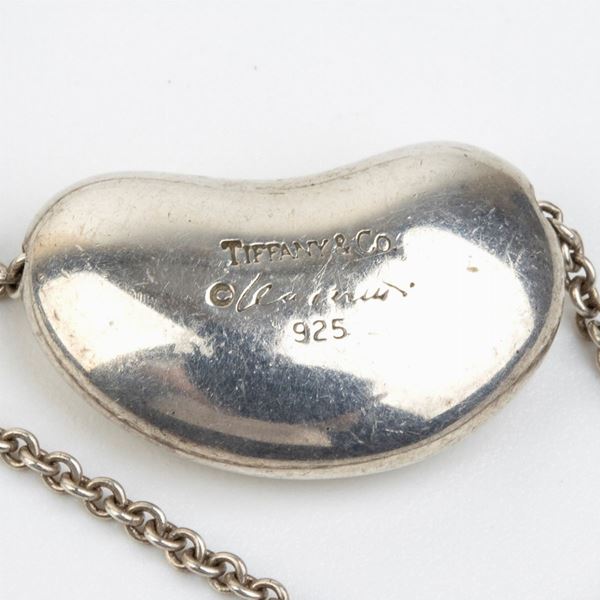 thin forzatina chain from wich bean-shaped pendant is suspended. Signed "TIFFANY & Co, Elsa Peretti".