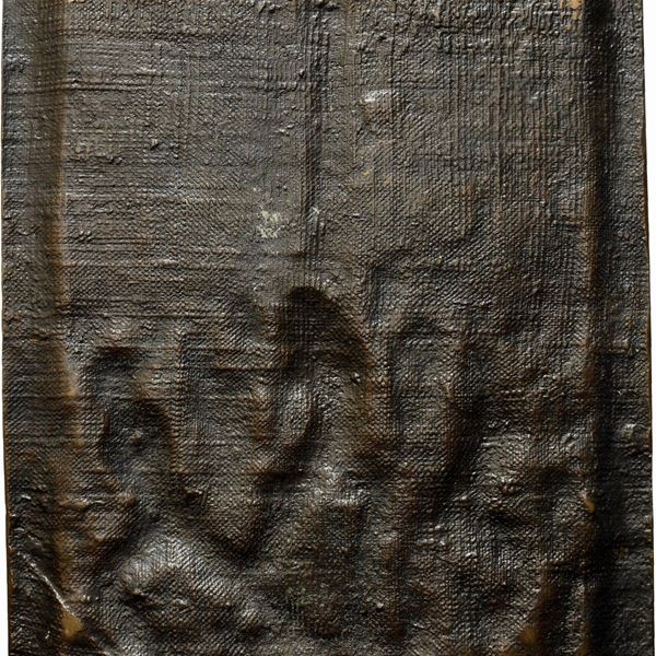 In the centre, Jesus Christ tied to a column, flagellated by Roman soldiers. On the right: 4 Roman soldiers and a naked man seen from behind in the lower corner; on the left, a soldier and three bearded male figures. Above the column base a helmet and a bearded face. In the background two large architectural arches, the one on the right broken. Fine fusion after original prototype.