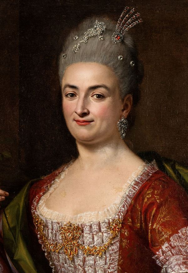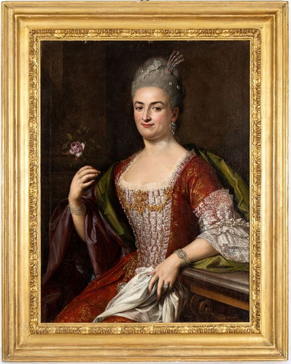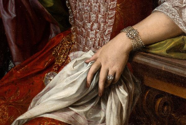 Gentlewoman with jewellery, pocket watch and rose in her right hand