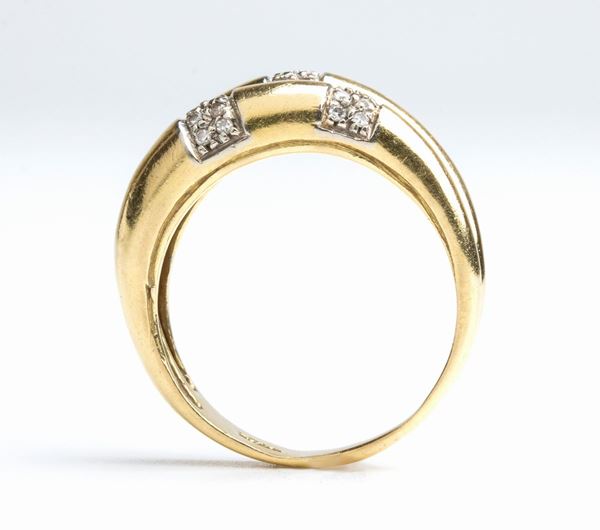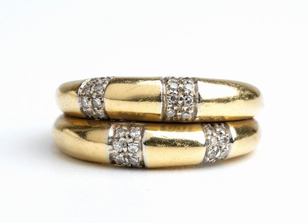 18k yellow gold, double band motif with four small pavรฉ diamonds. Hallmarked '750 - 185 AL'.