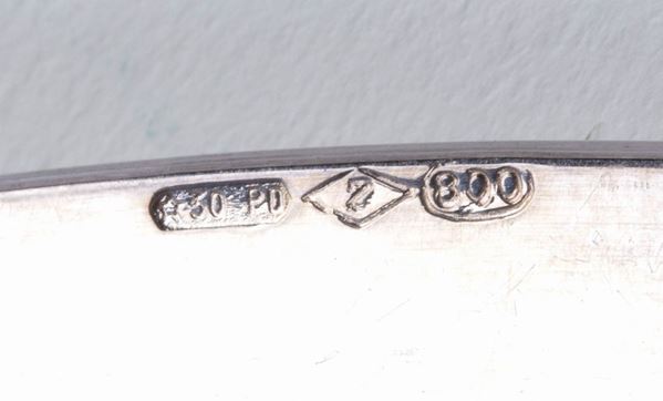 of circular shape with a smooth flap. 800/1000 silver, hallmarked '800 - 30 * PD', silversmith Zaramella Padova.