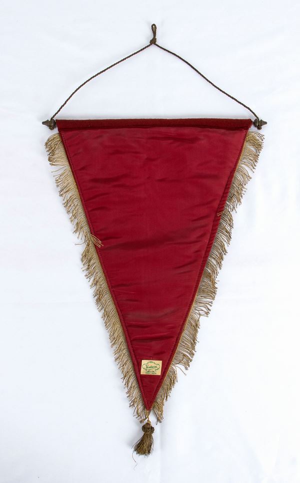 AS ROMA (Rome Sports Association, ASR) pennant in Pompeian red felt and synthetic tinsel fringe. Complete with metal rod. Marcato Ventricini Rome. Good conditions