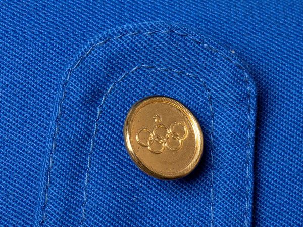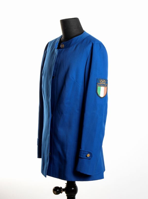 Jacket for the official uniform of the Italian Olympic national team at the 1960 Rome Olympics. Women's athlete's jacket, light blue, golden button with Olympic circles, tricolor ITALY shield with five Olympic circles in cotton and tinsel sewn to the left arm. Internal label from the manufacturer ENNIO. Very good condition