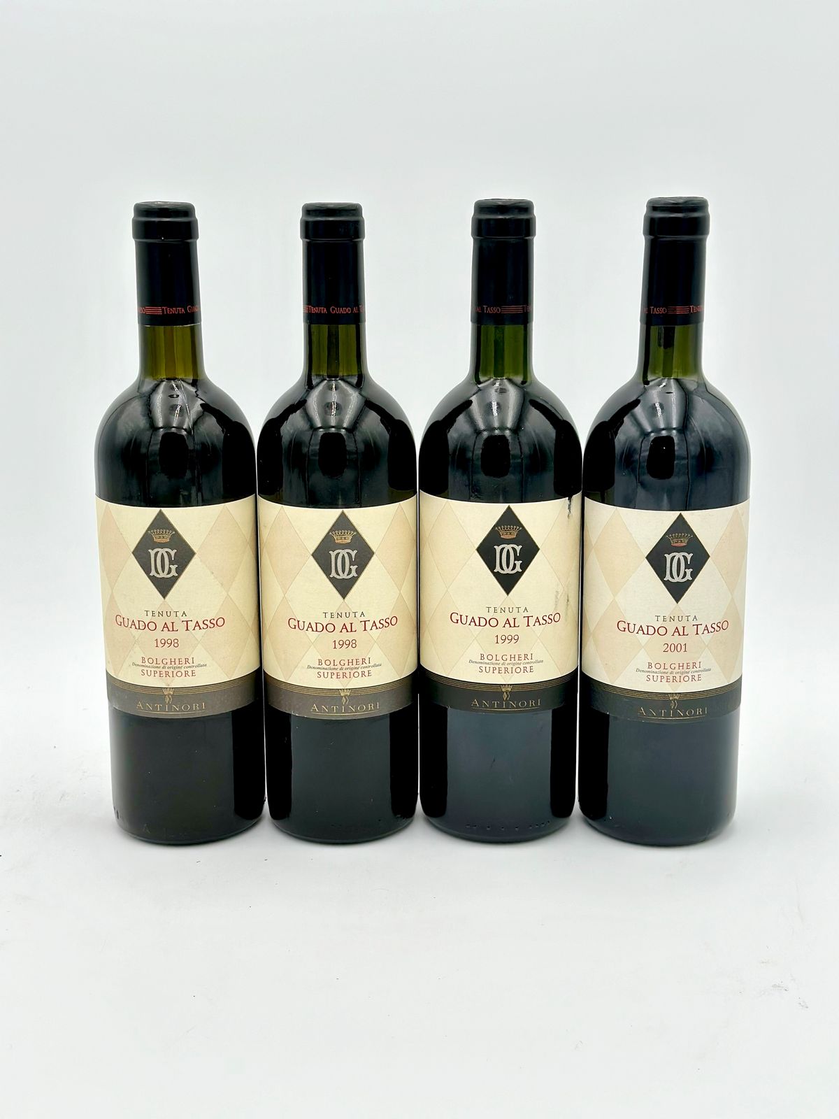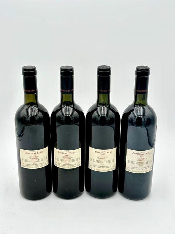 Toscana, Bolgheri Superiore DOC - 4 bottiglie (bt), annate 1998, 1998, 1999, 2001.
