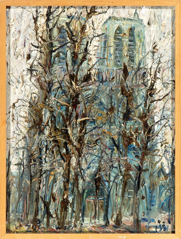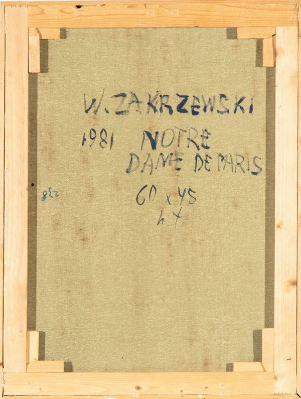 Signed lower left: Zakrzewski, dated lower right: 1981, signed, dated and titled on the back: W. Zakrzewski, 1981, Notre Dame de Paris