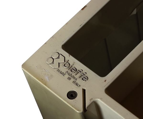 Designed by Joe Colombo for B-line, this cart has structure and drawers in injection-moulded ABS plastic material. Tie rods, screws and pivots in galvanised steel. Castors in polypropylene.