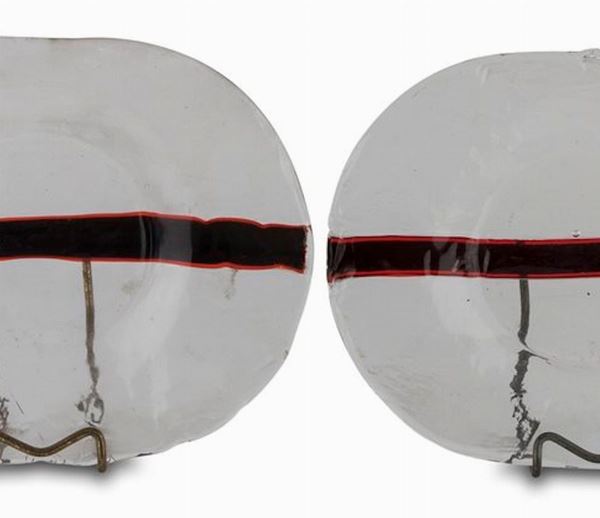 Beautiful pair of decorative plates with two-tone transparent background and iridescent black.