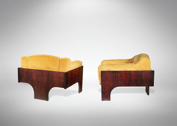 Set da salotto anni '70 in palissandro e velluto giallo.