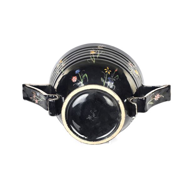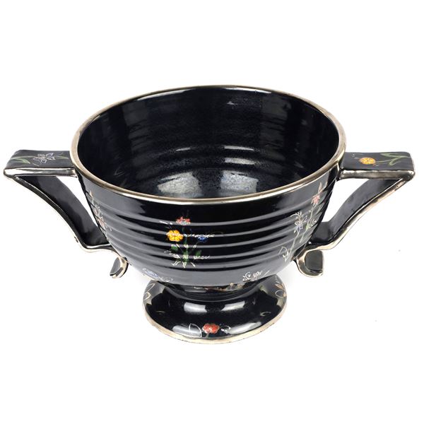 with small flower decoration and platinum finishes, bowl body with horizontal ribs. Alfredo Santarelli factory Gualdo Tadino