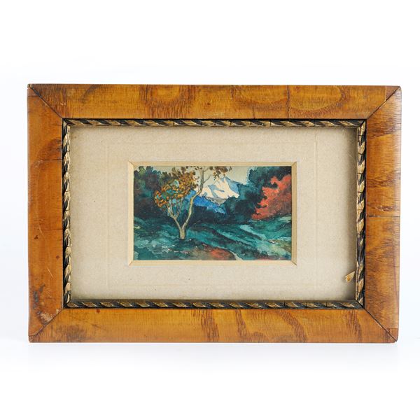 Lot of 3 watercolors and 1 oil on wood and paper, French school, early 20th century
