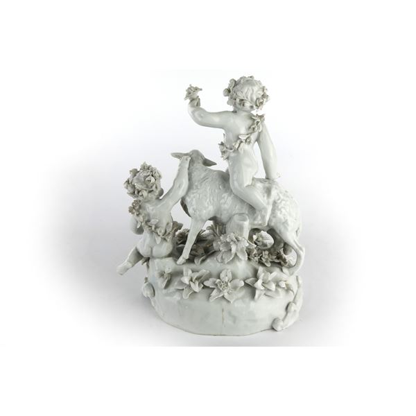 "putti with sheep", mark "n" crowned in underglaze blue, French manufacture.