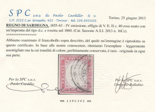 1860 - 40 cent. rosa chiaro n.16Cc, usato. (B) (Cert. Cardillo/Ballabio)