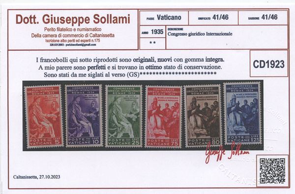 1935 - Congresso Giuridico n.41/46 nuovi con gomma integra, centratura superiore alla media. Cert. Sollami