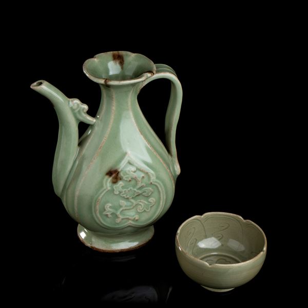 A CÉLADON GLAZED CERAMIC BOWL AND A CÉLADON GLAZED CERAMIC EWER