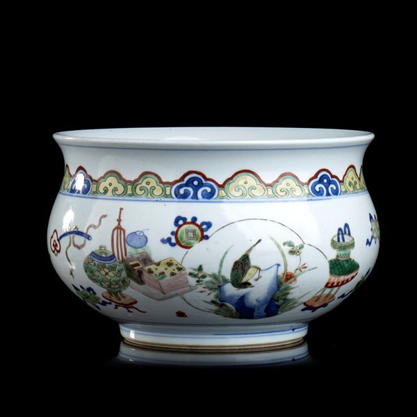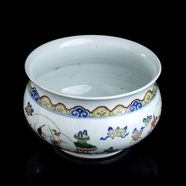 A LARGE 'FAMILLE VERTE' PORCELAIN BASIN