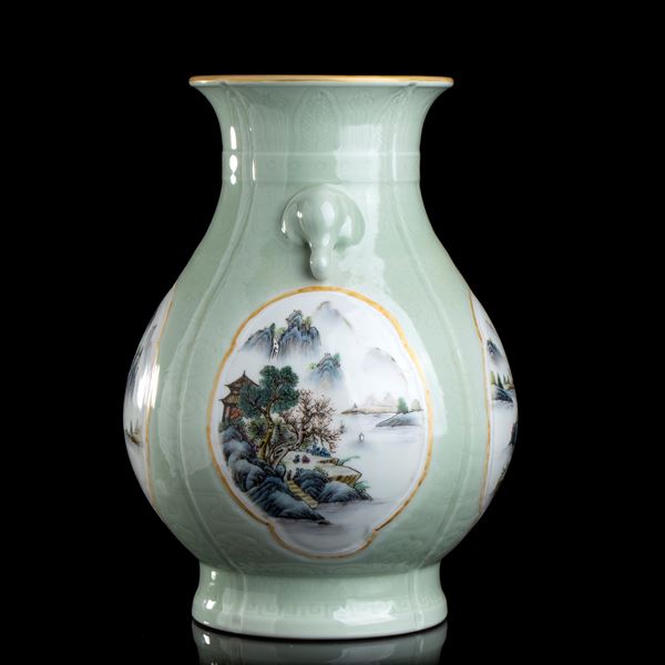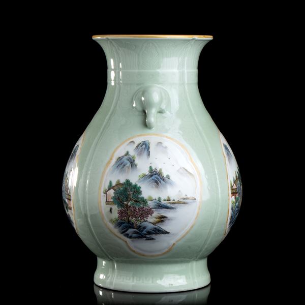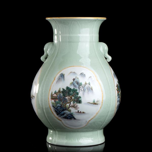 A LARGE POLYCHROME ENAMELLED PORCELAIN VASE