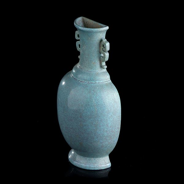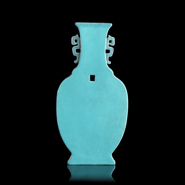 A 'ROBIN'S EGG' GLAZED PORCELAIN WALL VASE