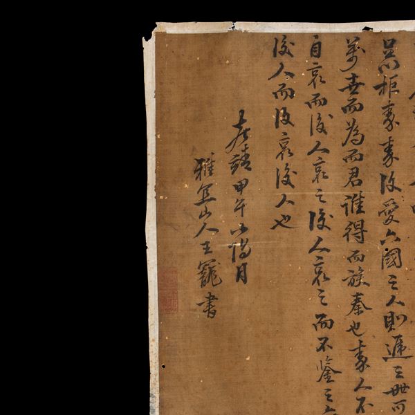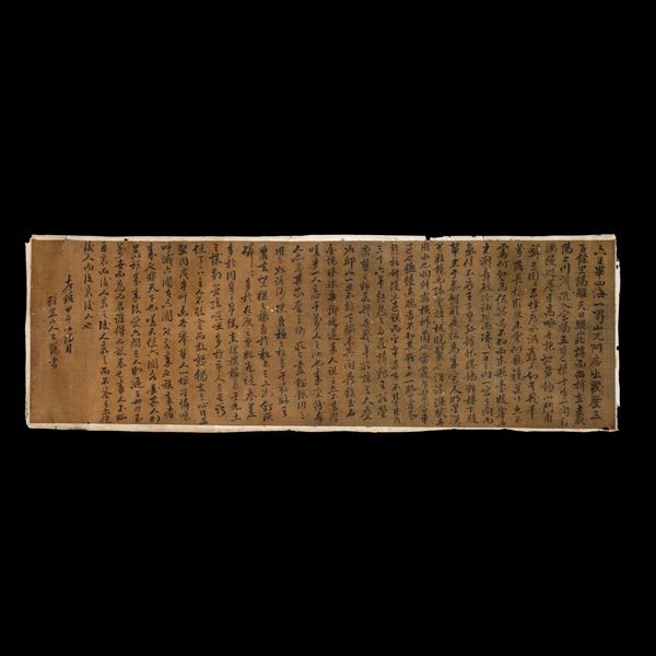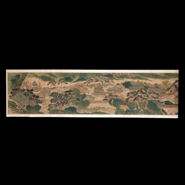 Handscroll painted in ink and colors on paper, 39 x 270 cm (the painting); 38 x 115 cm (the calligraphy)