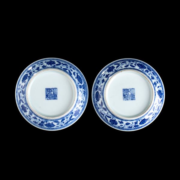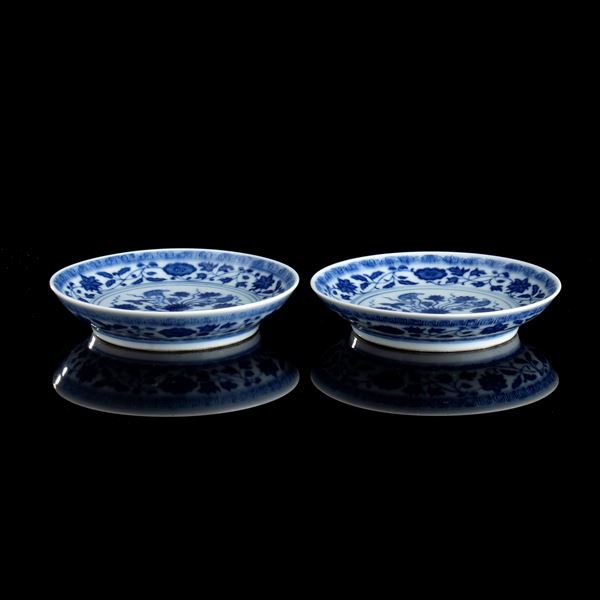 TWO 'BLUE AND WHITE' PORCELAIN SAUCERS