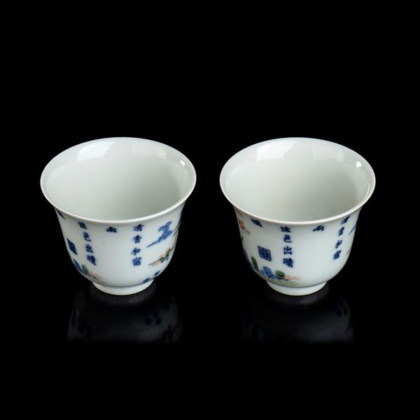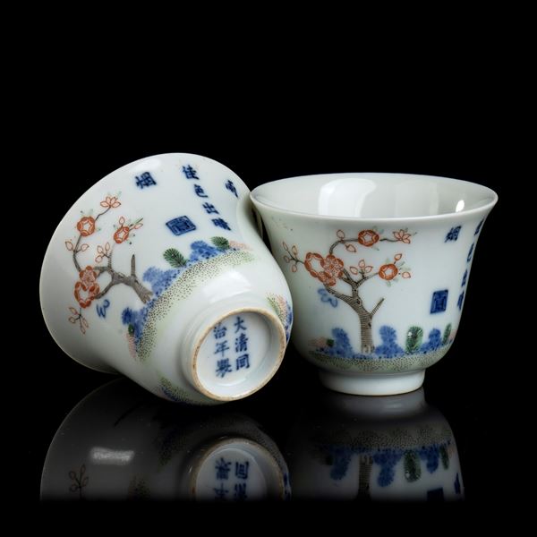 TWO POLYCHROME ENAMELLED PORCELAIN CUPS