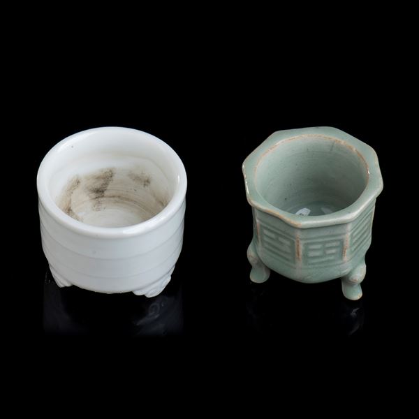 TWO SMALL GLAZED CERAMIC INCENSE BURNERS