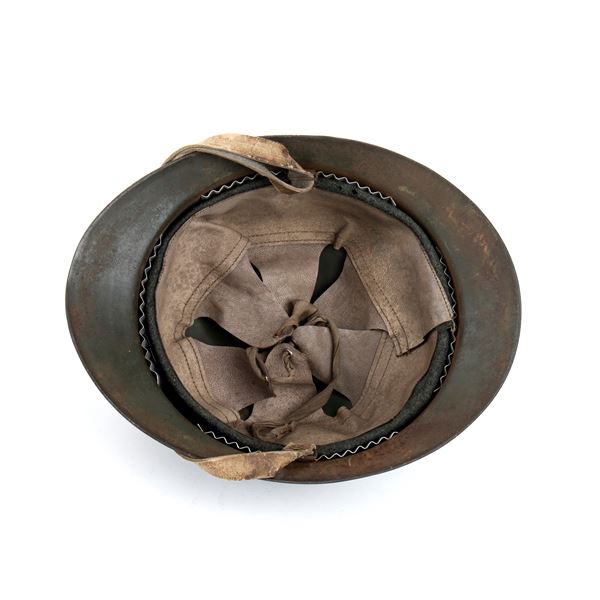 very rare helmet from the chemical service, white metal frieze on a grey-green helmet, the frieze was originally applied to the helmet, it has not taken on the same patina because it is nickel-plated,original complete and in excellent condition