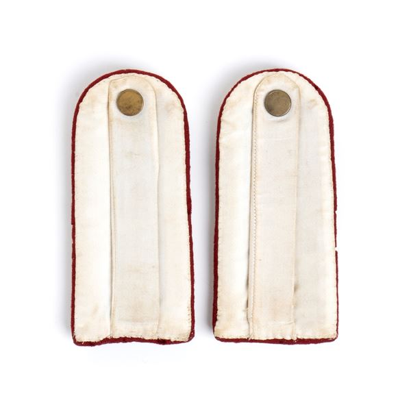 Beautiful gilt shoulder boards fora an Admiral of the intendance corp of the Royal Navy, embroidered in gold boullioni, undercloth of amaranth red and lined with white cotton, excellent condition