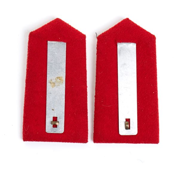Al pair of red cloth shoulder boards with gilt metal edges and badge, excellent condition