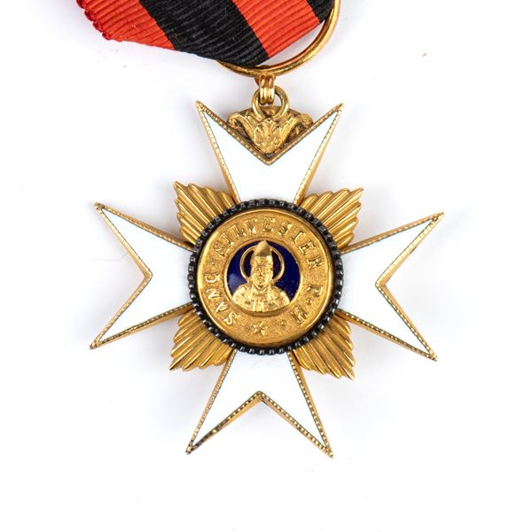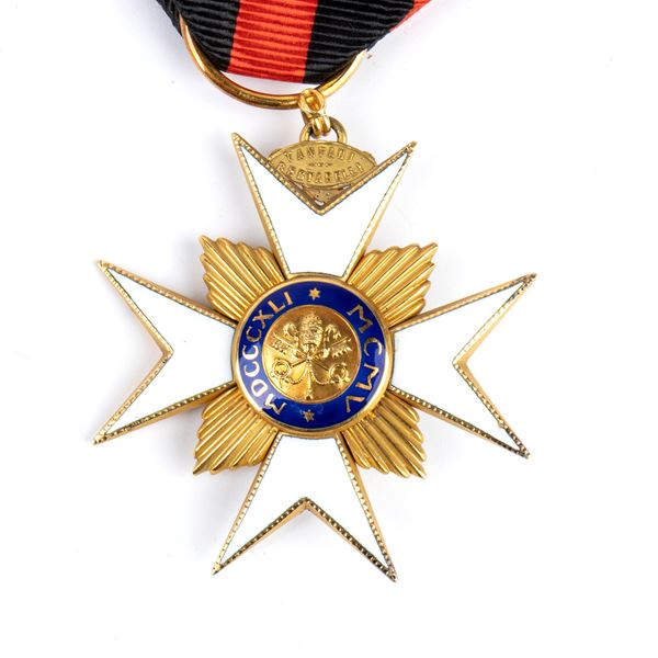 Order of Saint Sylvester, knight's insignia from the Pius XI period, with rosette and case, first half XX cent.