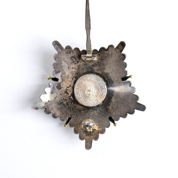 beautiful breast badge of the order, second model of large size, chiselled, gilded silver and enamel, central pin and plaque with the manufacturer's name on the reverseside, in excellent condition