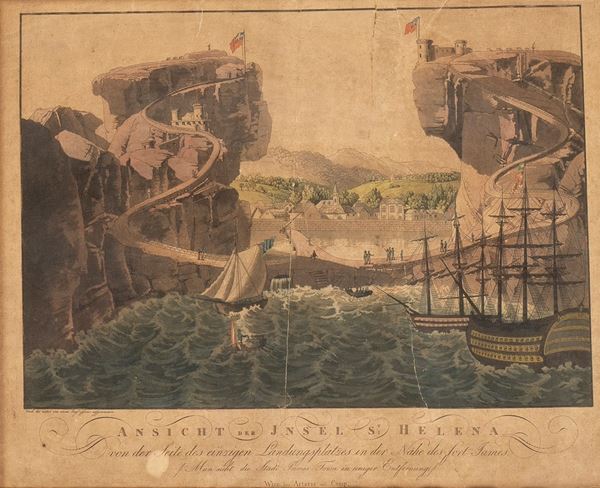 View of the island of St. Helena from the side of the only landing place near F..., Napoleonica...