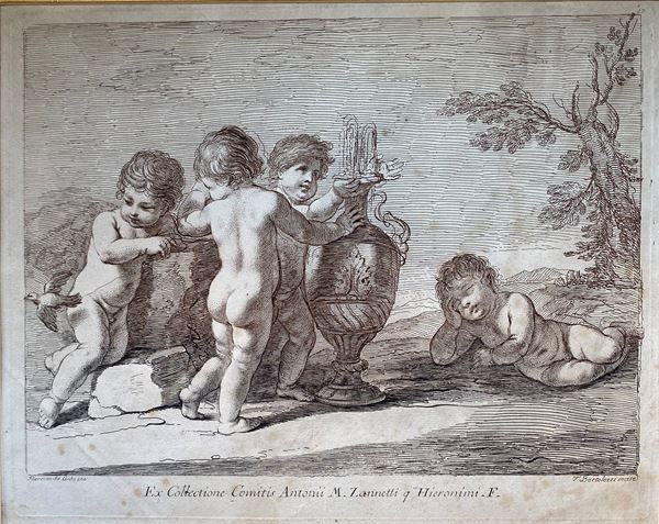 B. Four putti, after Guercino's painting. Etching, 310 x 385 mm (sheet). Fine impression in brown ink and black ink on laid paper. In good general conditions except for barely visible stains. Glued to the reverse with paper tape on a modern passe-partout.