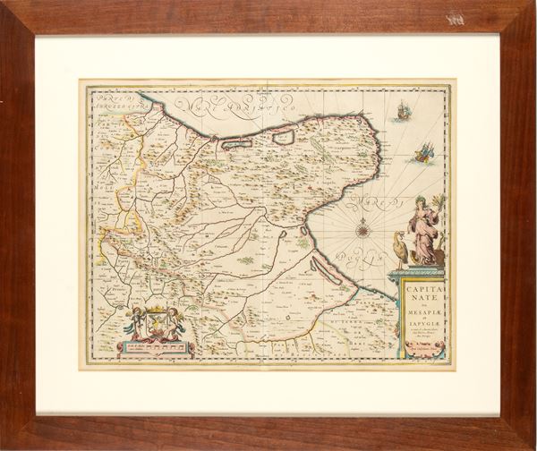 engraving, 37.5 x 49.5 cm (plate); map of the Gargano, published by Mortier, hand coloured, printed on laid paper, trace of the usual central fold (a tear on the fold); otherwise in good condition. The print has not been examined out of frame (62 x 73 cm)