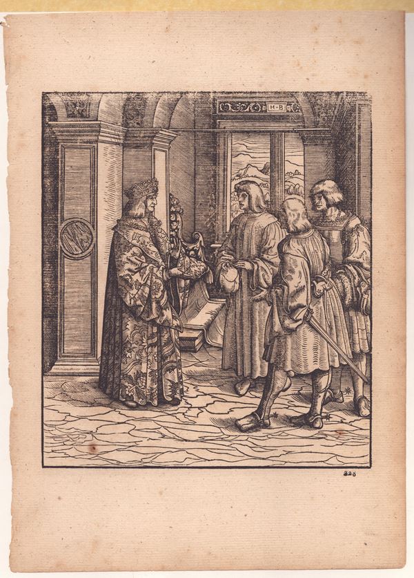 woodcut, 33 x 23.5 cm, 1775 edition of Der Weisskunig, printed on laid paper, sheet in good condition except for slight browning, glued along the upper margin on a modern passe-partout. Bartsch 80