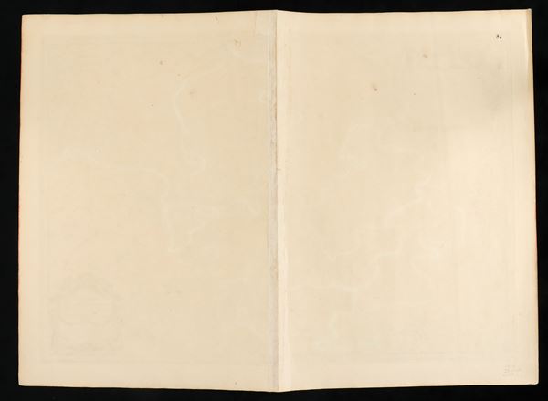 engraving and etching, 54 x 74 cm. Map of the province of Berry in France. Fine, fresh and sharp impression on two sheets of laid paper with watermark, joined together. Usual central fold. Nice coeval coloring. Sheet in very condition except for very light uniform oxidation.