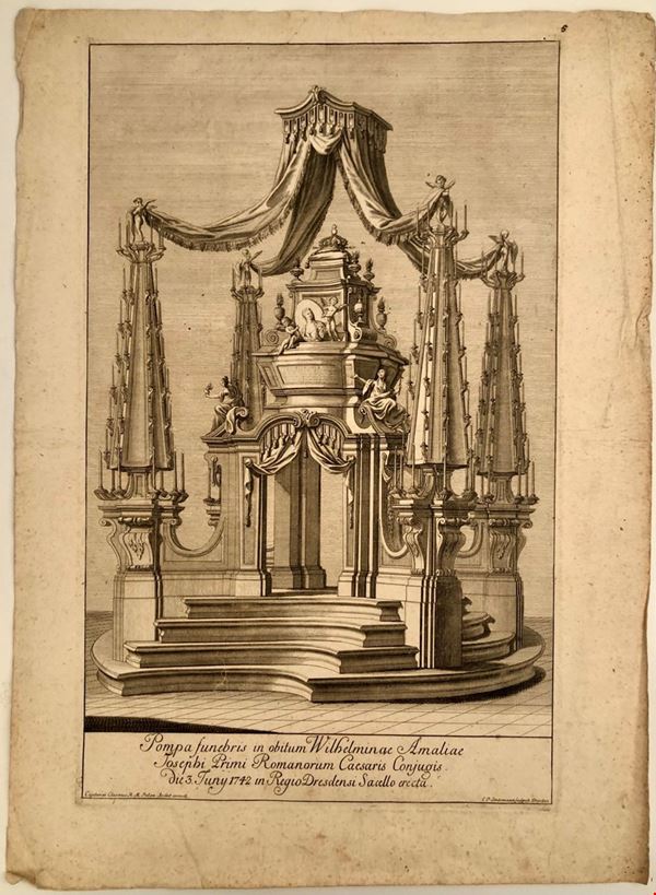 9.  ;Christian Philipp Lindemann (1700-1754), Cajetanus Claverius (1701-1800) PUMPA FUNEBRIS IN OBITUM WILHELMINAE AMALIAE Etching, 49 x 30.5 cm