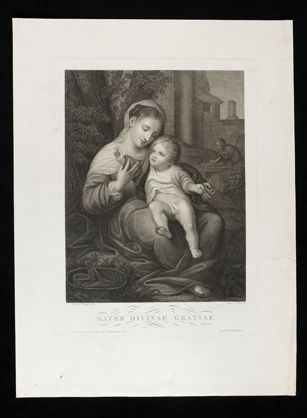 b. Antonio Zecchino (fl. 19th century) after Correggio, Mater Divinae Gratiae, engraving, 58 x 43 cm, printed on wove paper, good condition except for two tears, one of which restored