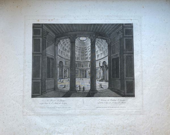 Giovanni Acquaroni, Internal view of the Pantheon, 1826. Burin and etching, 42 x 56 cm. Good condition, signs of foxing.