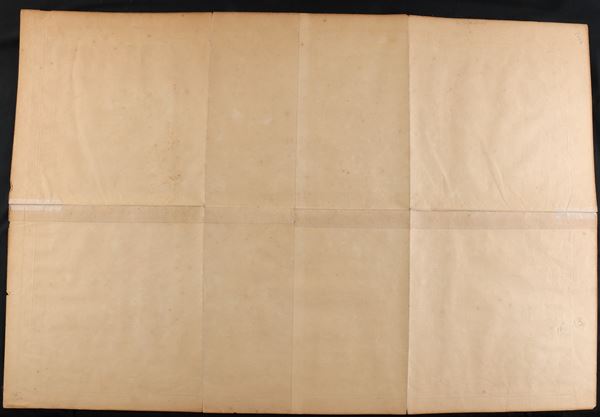 etching and engraving, 96.5 x 65.5 cm. Two parts joined. Printed on 4 joined sheets of laid paper. One horizontal fold and two vertical folds. Uniform burnishing of the paper. Margins with some short tears.