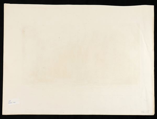 etching, 383 x 531 mm (sheet), fine impression on laid paper with double watermark (lily in double circle and A M G / SERAFINI / FABRIANO). Sheet in very good condition except for slight creasing on the left margin and light browning along the edge. Focillon 453
