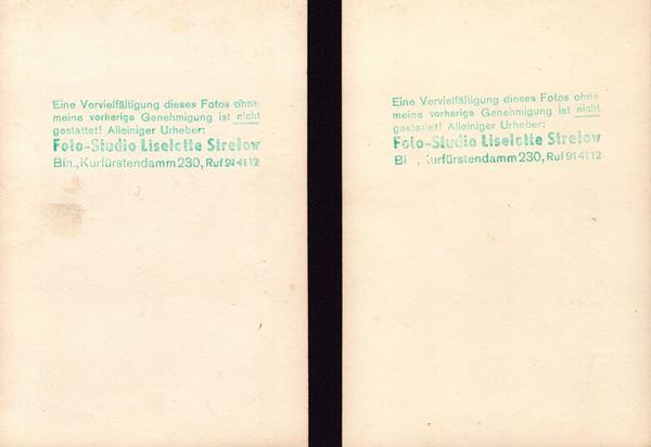 stampa su carta baritata, 10,5 x 15,5 cm, firma a matita al verso e timbro al retro. Ottime condizioni