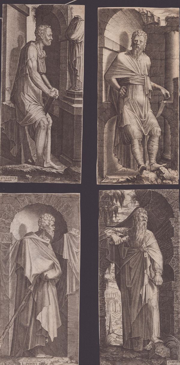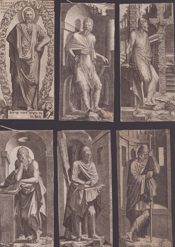 lot of 10 engravings from the series of 14 depicting Christ with the apostles and Saint Paul. Engraving, approx. 197 x 97 mm each Hollstein 9-22. Passavant III.111.5-17. 2nd and 3rd states. Very fine and crisp impressions on thin laid paper. Trimmed specimens but otherwise in excellent condition.