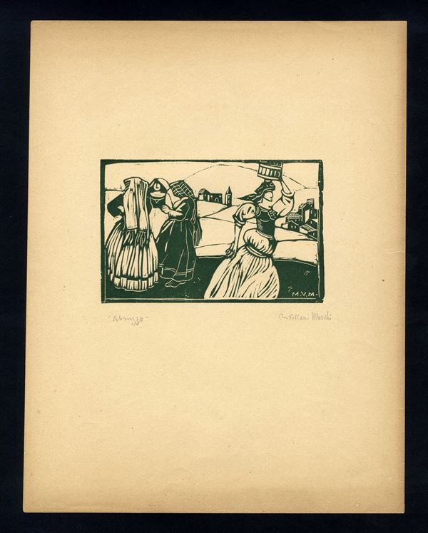 lot of 3 woodcuts, 23.5 x 30.5 cm and 25 x 32 cm. In very good condition, except for some tears on the edges of "Costume di Pettorano".