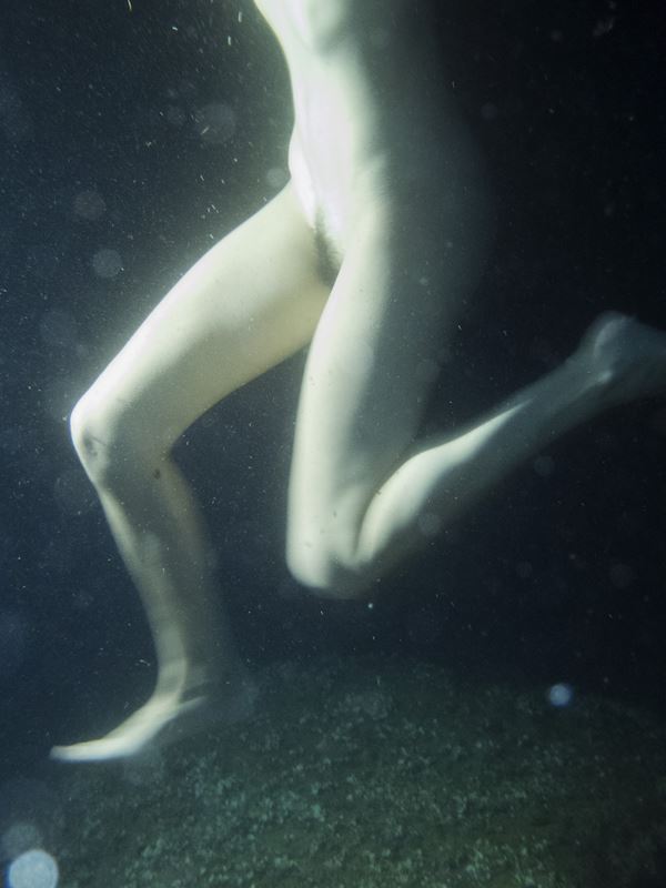 "For the Respiro series (2020 - 2023, France, Italy, Greece) I placed my subjects in the Mediterranean Sea, capturing them in the middle of the night. The shots are taken in apnea, reversing the point of view. The figures underwater seem as if they are in suspended animation, like specimens preserved in jars, like creatures that may flinch any second and jerk to life. Darkness and water are the space-time to transport our ambivalence, observing what a body can do in an alien dimension, where the laws of physics change rules and the individual elements become universal: instinct, survival, breath. Ultimately, the series seeks to showcase our inner selves: frozen amid conflicting wants, stuck between forgotten breaths, and forever dying to live." (Martina Cirese)