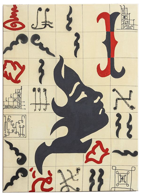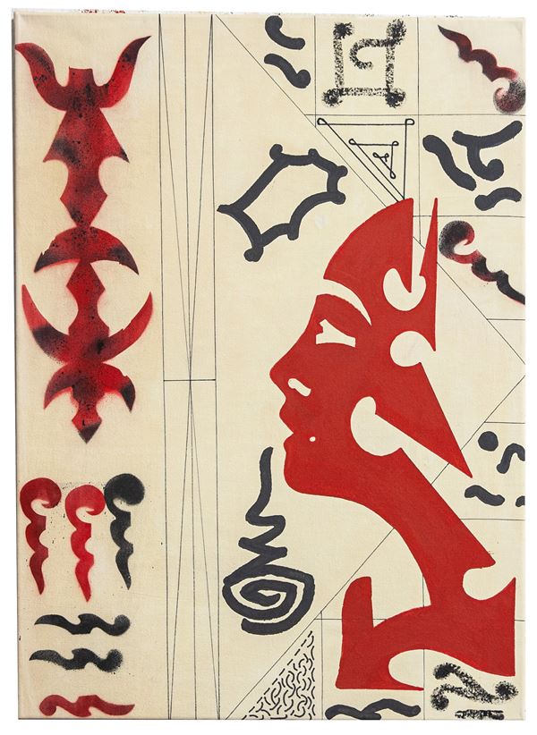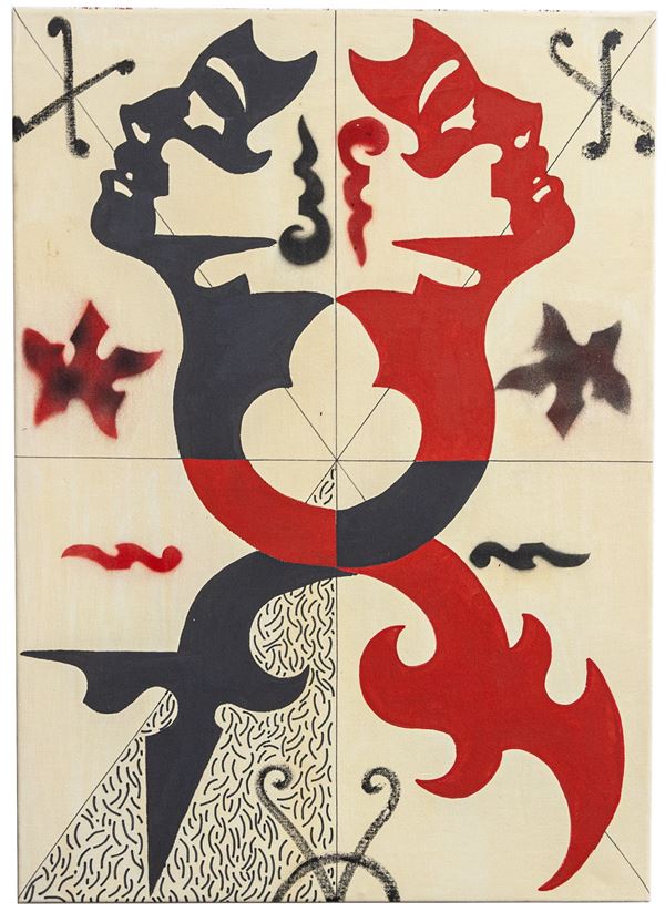 Enamels, marker and stencil on canvas