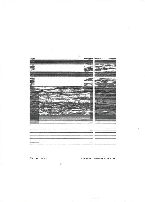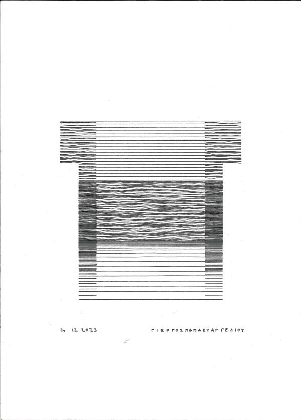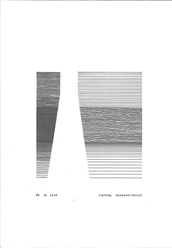 Giorgios Papaevangeliou is an Italian architect and artist. He graduated in Architecture in 2007. His drawings represent a place where dialogue with reality, with construction, can dilate, expand beyond the limits of the physical. His lines construct spatial concepts, be they notes or questions, placed in white space to find new ones. These are walls, curtains and beams of light that cover everything enclosed within: the protection of a sacred, clean space, within which one can retreat to continue producing.